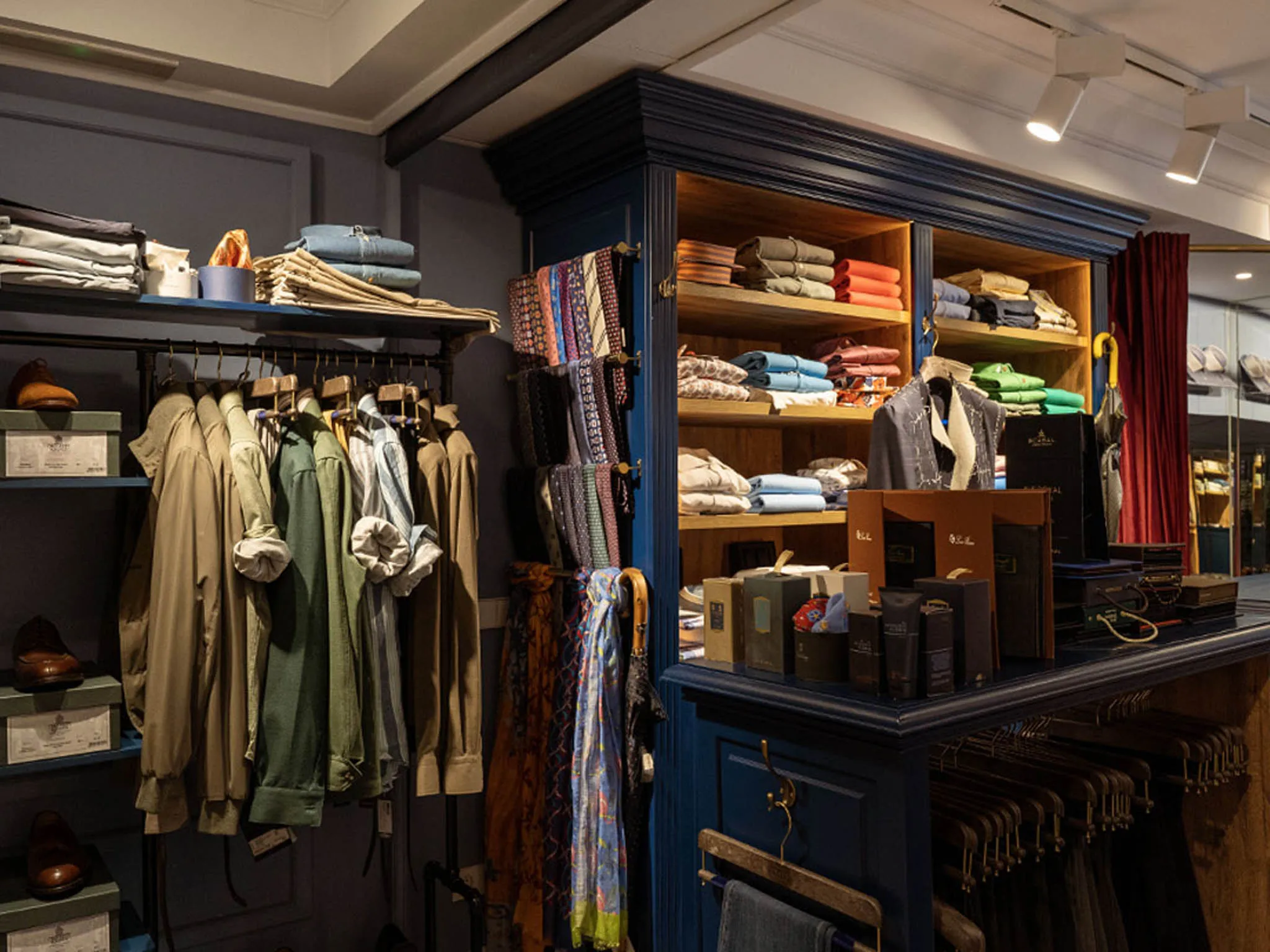 We believe that the bespoke experience goes beyond tailoring and shirting. Our boutique offers a carefully curated selection that includes our Prêt-à-porter line and accessories from renowned brands such as Pasotti, E. Marinella, Calabrese, and Crockett & Jones.